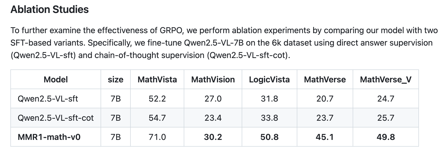• After 6 hours of training on 64 NVIDIA H100 GPUs, an efficient reinforcement learning method (GRPO) performs robustly.