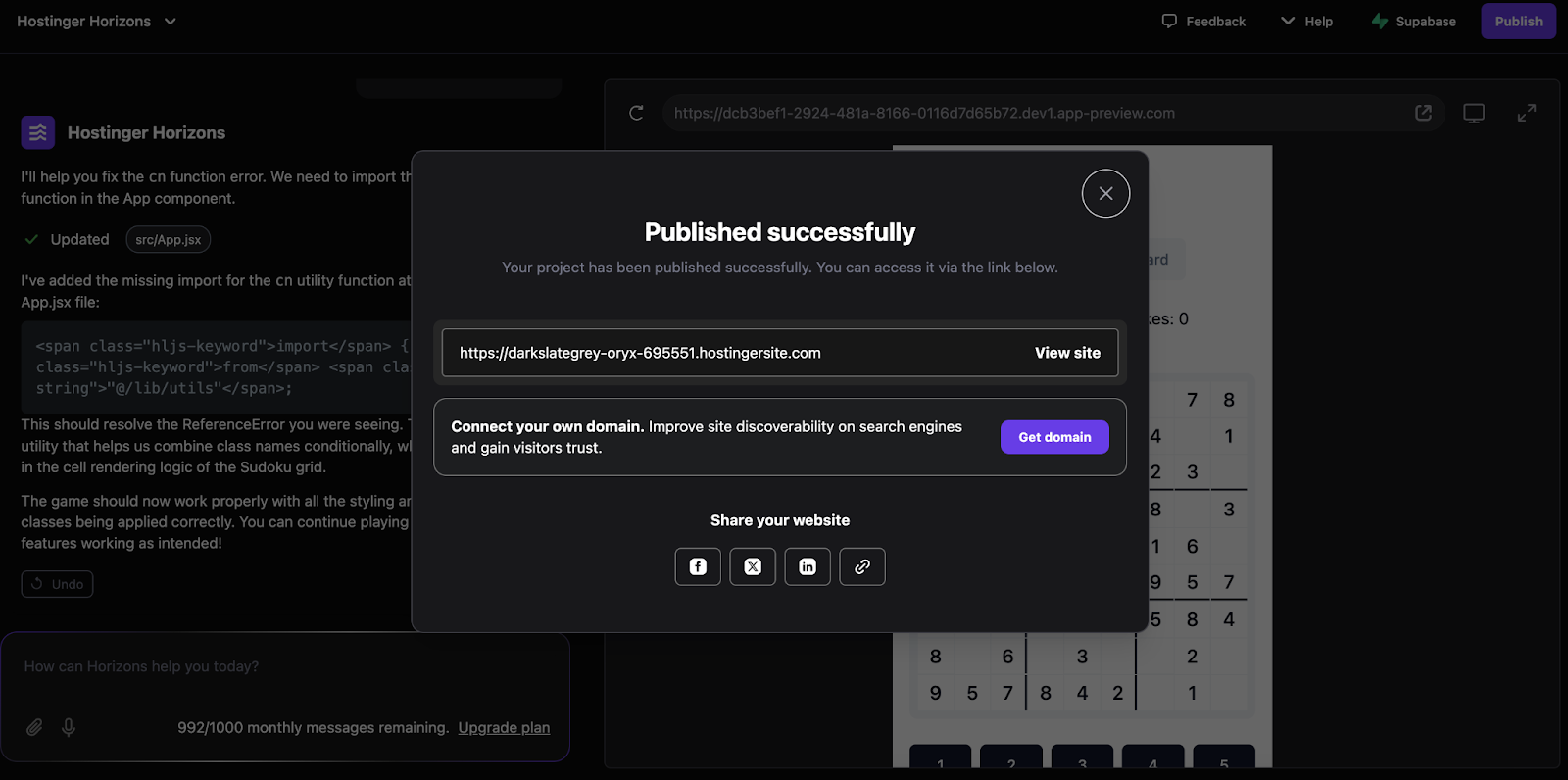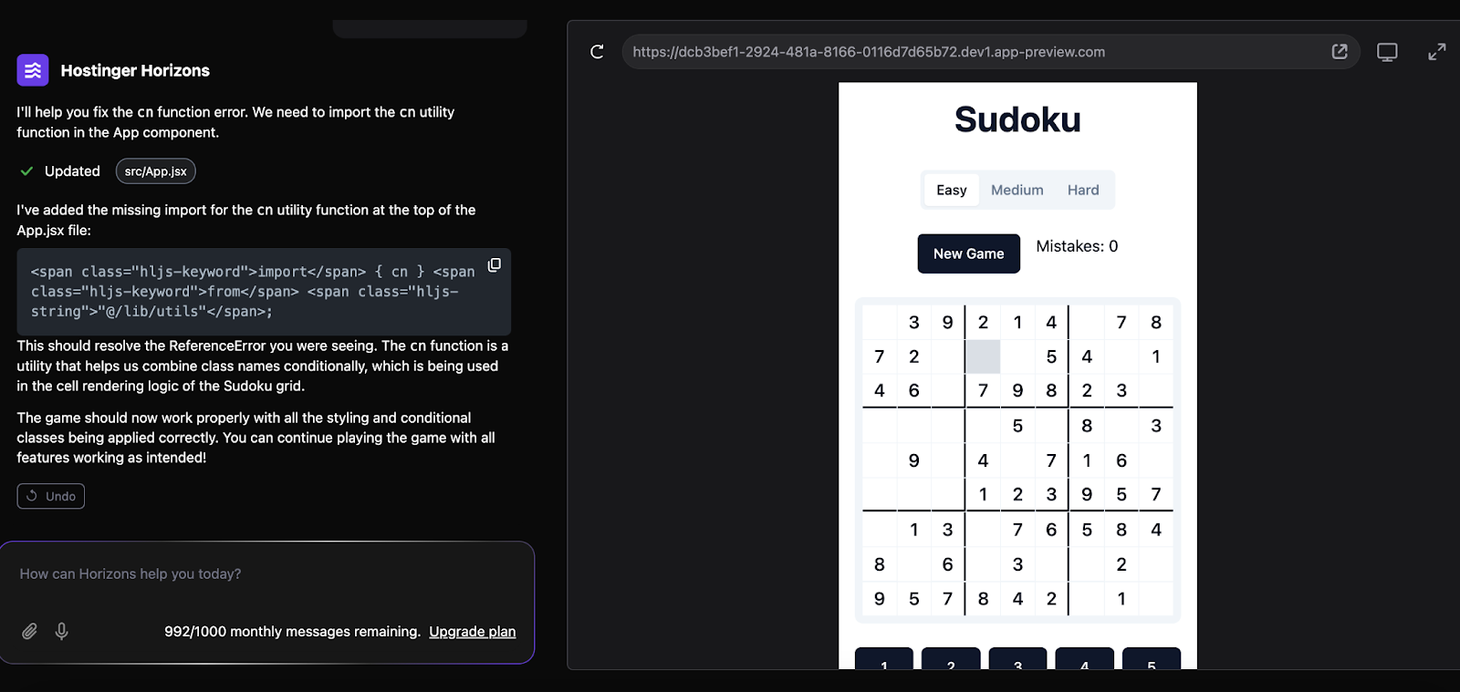 Sandbox Environment: Hostinger Horizons provides a sandbox environment where users can test their applications without affecting the live version, ensuring a smooth deployment process.