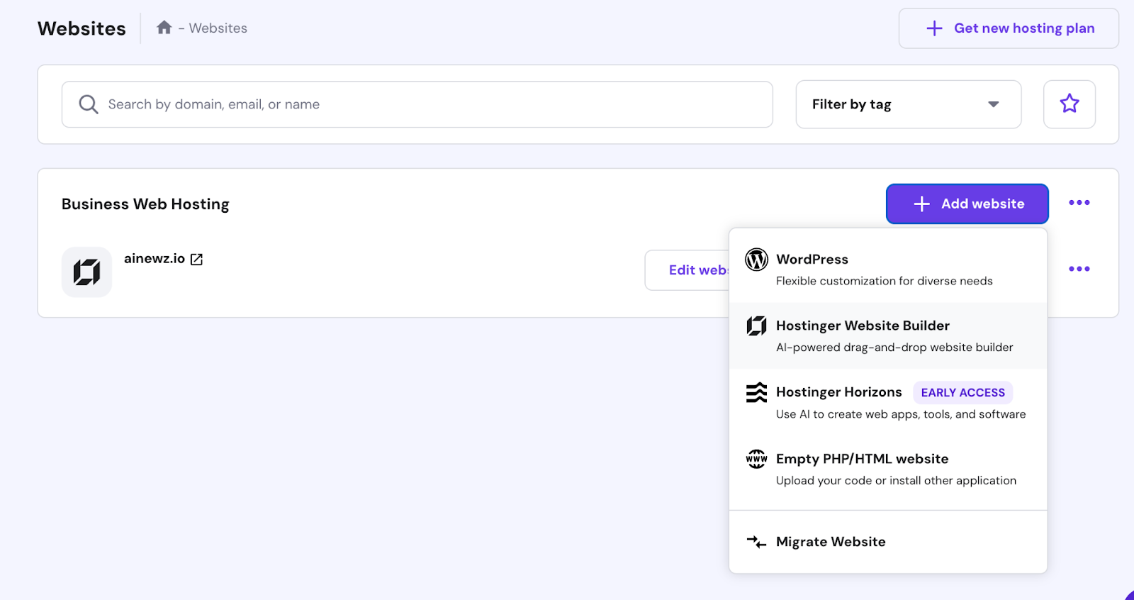 After purchasing, log in to your Hostinger account and navigate to the hPanel dashboard.