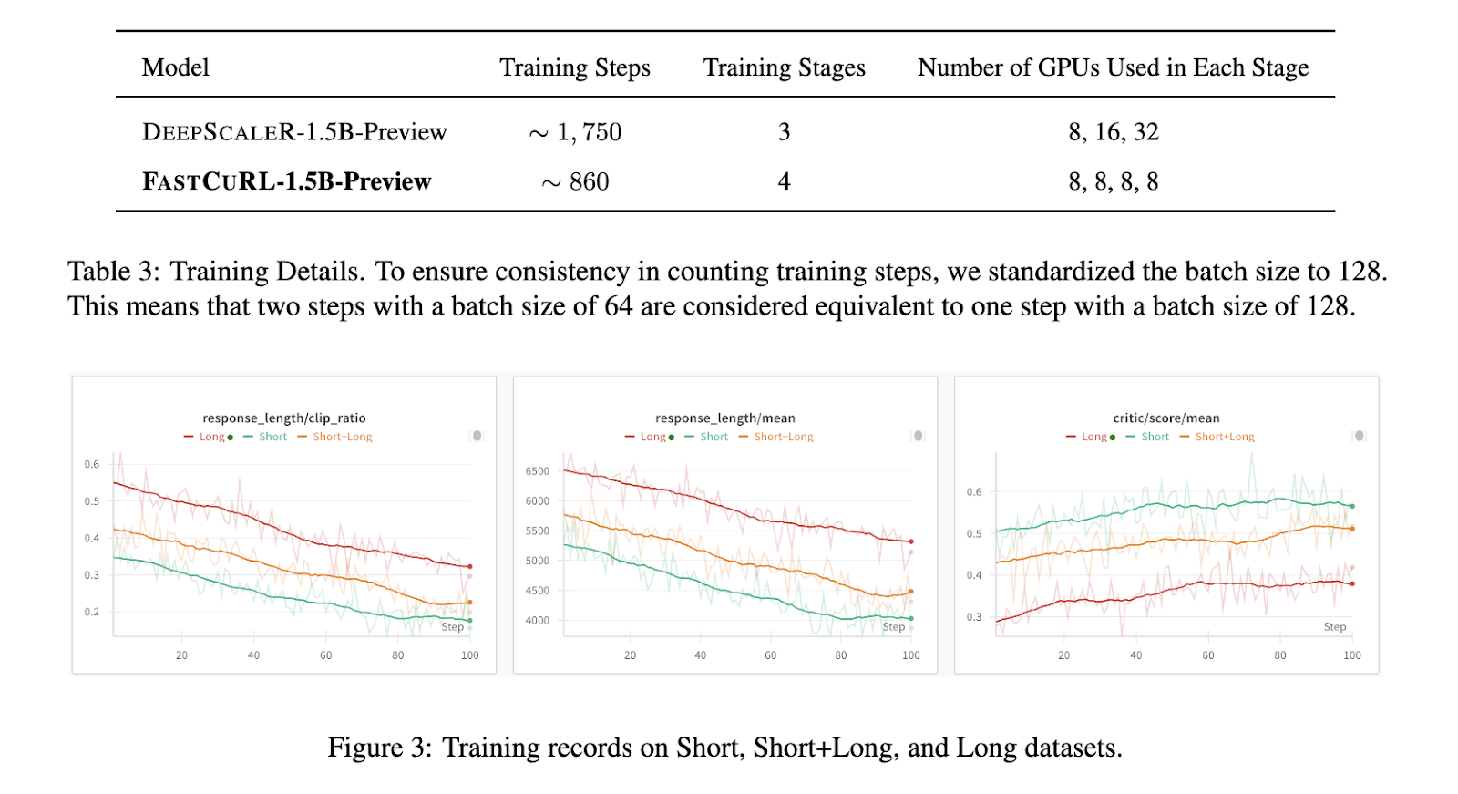 The approach involves a deliberate segmentation of data by input length, driven by the hypothesis that longer prompts usually lead to longer and more complex outputs. The model first learns using short prompts under an 8K window. As training proceeds, the model transitions to a mixed dataset with 16K window length, then to the long dataset with the same window size, and finally reviews the combined data again. Each stage is trained for one iteration, and FASTCURL requires about 860 training steps. This is efficient compared to DeepScaleR’s 1,750 steps, representing a 50% reduction in training time and resource usage while maintaining effectiveness.