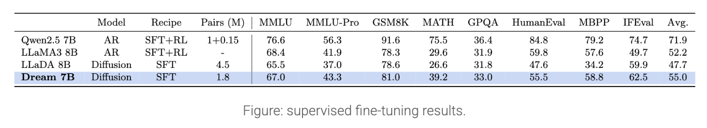 In conclusion, researchers introduced Dream 7B, which represents a breakthrough family of diffusion language models characterized by efficiency, scalability, and flexibility through carefully developed training methodologies. These models perform comparably with leading autoregressive models of similar size across general tasks, mathematics, and coding applications. Dream& most distinctive strengths emerge in advanced planning scenarios and flexible inference capabilities, where its diffusion-based architecture provides significant advantages over traditional autoregressive approaches. This achievement shows the viability of diffusion models as a compelling alternative path forward in language model development.