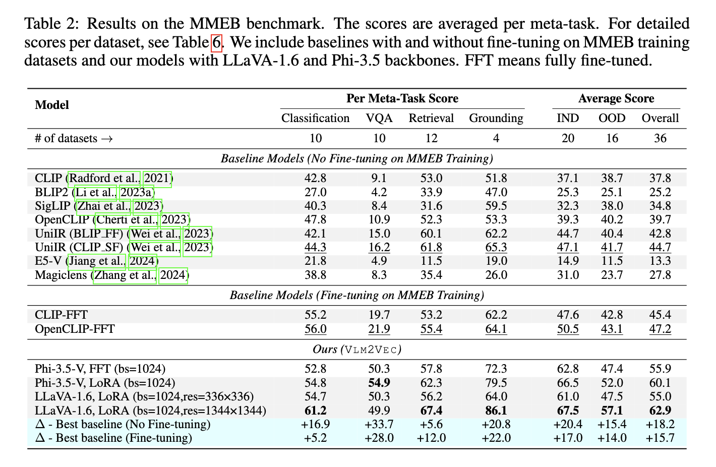 To build VLM2VEC, the research team used backbone models such as Phi-3.5-V and LLaVA-1.6. The method begins by constructing task-specific instruction-based queries and targets, processed through a vision-language model to generate embeddings. Contrastive training is employed using the InfoNCE loss function with cosine similarity, aligning embeddings by maximizing the similarity between matching query-target pairs while minimizing it for mismatches. To support large batch sizes, critical for training with diverse negatives, the researchers used GradCache, which splits batches into memory-manageable sub-batches and accumulates gradients. This process ensures efficient training even with the high memory demands of multimodal inputs. Task-specific instructions are embedded within the training pipeline to help the model adapt its encoding to the nature of the task, such as grounding or retrieval, further boosting its generalization capabilities.