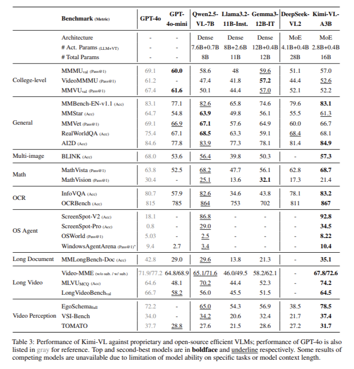 Kimi-VL demonstrated strong results across a range of benchmarks. On the LongVideoBench, it scored 64.5; on MMLongBench-Doc, it achieved 35.1; and on the InfoVQA benchmark, it led with 83.2. On ScreenSpot-Pro, which tests understanding of UI screens, it scored 34.5. The Kimi-VL-Thinking variant excelled in reasoning-intensive benchmarks like MMMU (61.7), MathVision (36.8), and MathVista (71.3). For agent tasks such as OSWorld, the model matched or exceeded performance from larger models like GPT-4o while activating significantly fewer parameters. Its compact design and strong reasoning capabilities make it a leading candidate among open-source multimodal solutions.