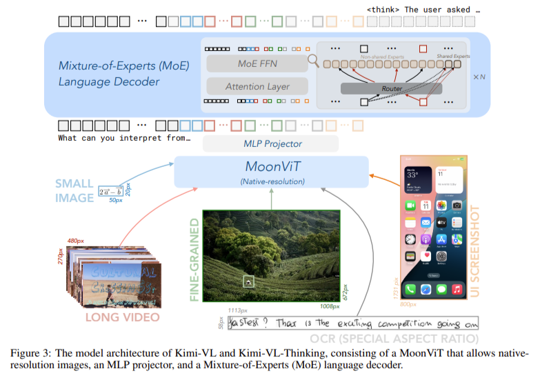 MoonViT, its vision encoder, natively processes high-resolution images, improving clarity in tasks like OCR and UI interpretation.