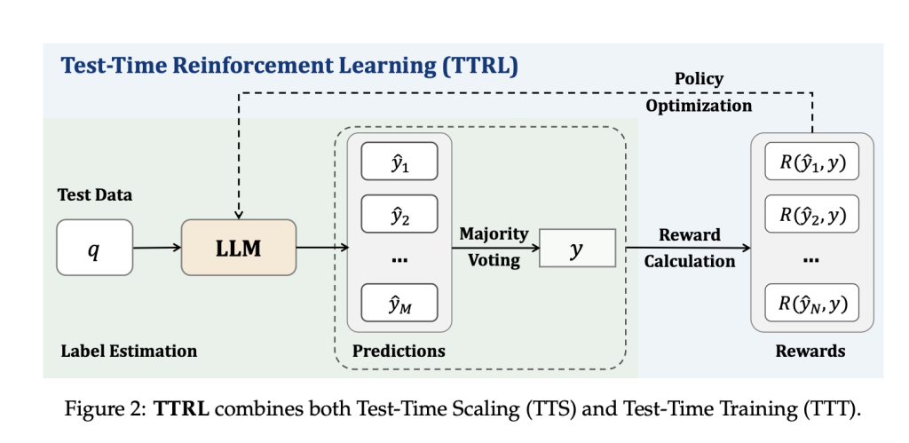 Researchers from Tsinghua University and Shanghai AI Lab introduced Test-Time Reinforcement Learning (TTRL). TTRL is a training framework that applies RL during inference, using only unlabeled test data. It leverages the intrinsic priors of pre-trained language models to estimate pseudo-rewards through majority voting across sampled outputs.