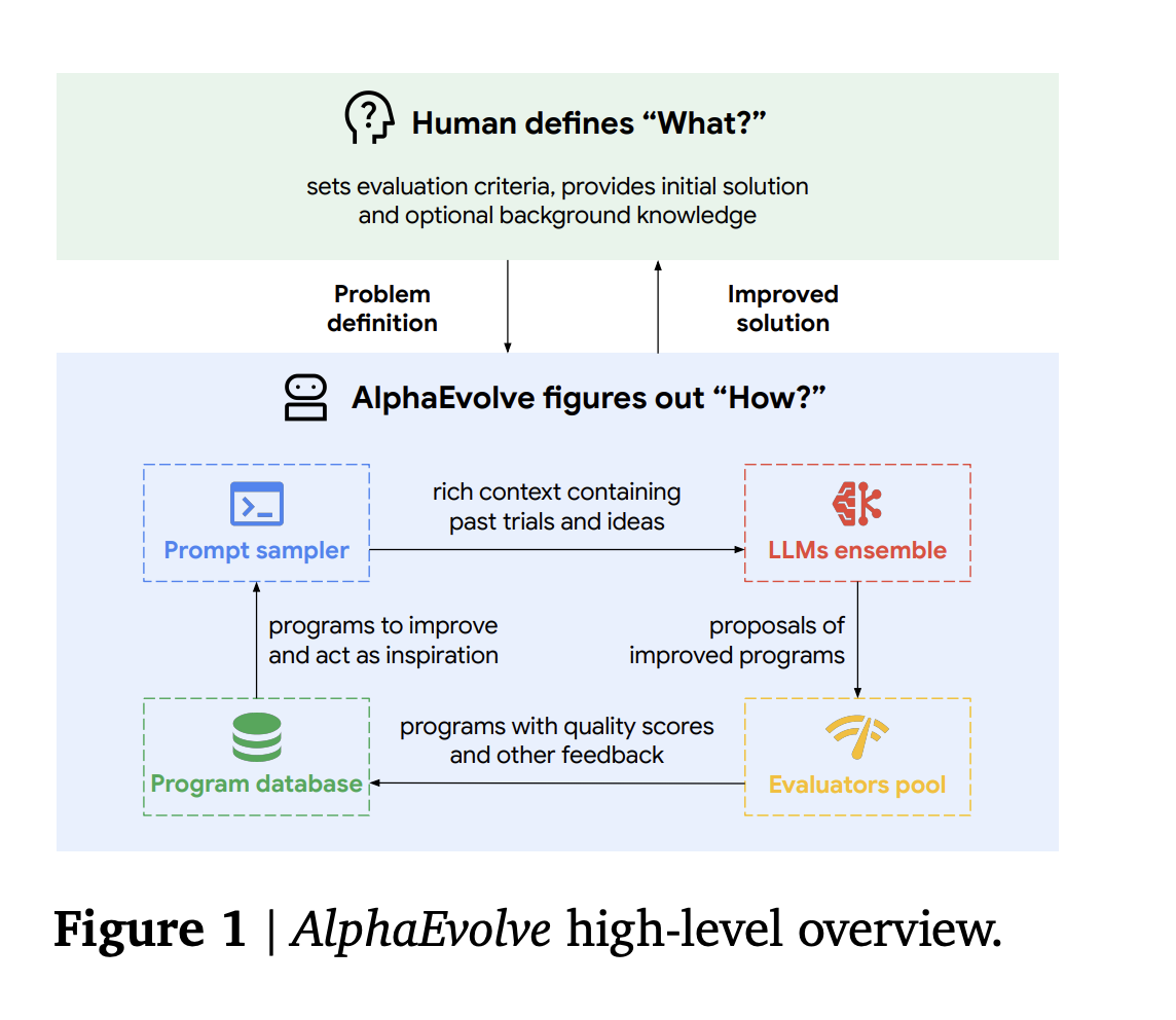 To address these limitations, Google DeepMind has unveiled AlphaEvolve, a next-generation coding agent powered by Gemini 2.0 LLMs. AlphaEvolve is designed to automate the process of algorithm discovery using a novel fusion of large-scale language models, automated program evaluation, and evolutionary computation. Unlike conventional code assistants, AlphaEvolve autonomously rewrites and improves algorithmic code by learning from a structured feedback loop—iteratively proposing, evaluating, and evolving new candidate solutions over time.