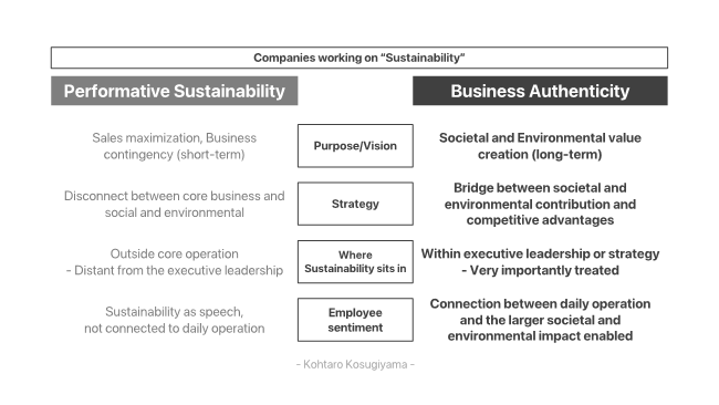 During my work as the internal Head of Sustainability for The Adecco Group Japan and as an external sustainability strategy and transformation consultant, I often heard honest opinions from people. “I understand it is important, of course, but if it doesn’t commit to sales growth, how can I buy the argument?” “Sustainability people tell us what we cannot do, but not what we can do instead.” “We don’t disagree with them, we believe it’s very important. But a company can’t exist if its finances are not in the right shape.” All these comments come from the presumption that pursuing sustainability fundamentally contradicts the pursuit of maximized financial gain. However, I disagree; these claims persist because we simply don’t have enough businesses and CEOs that can bridge those two seemingly conflicting perspectives and practice authentic sustainability.