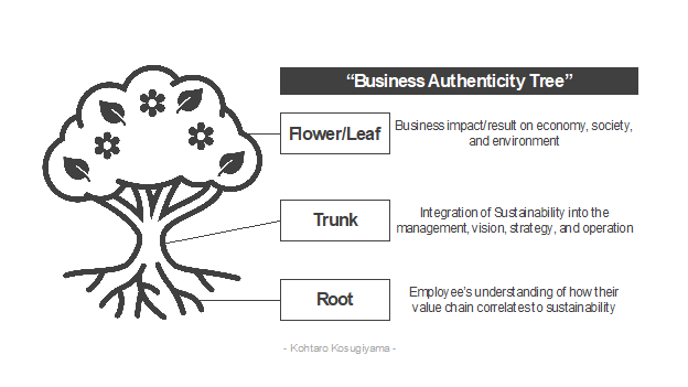 But there is another way to look at business authenticity: a tree. Trees grow when their roots are deeply set, their trunks are thick and well nourished—as a result, they produce fresh leaves and flowers. To produce beautiful flowers, it takes years to deepen the roots and thicken the trunk.