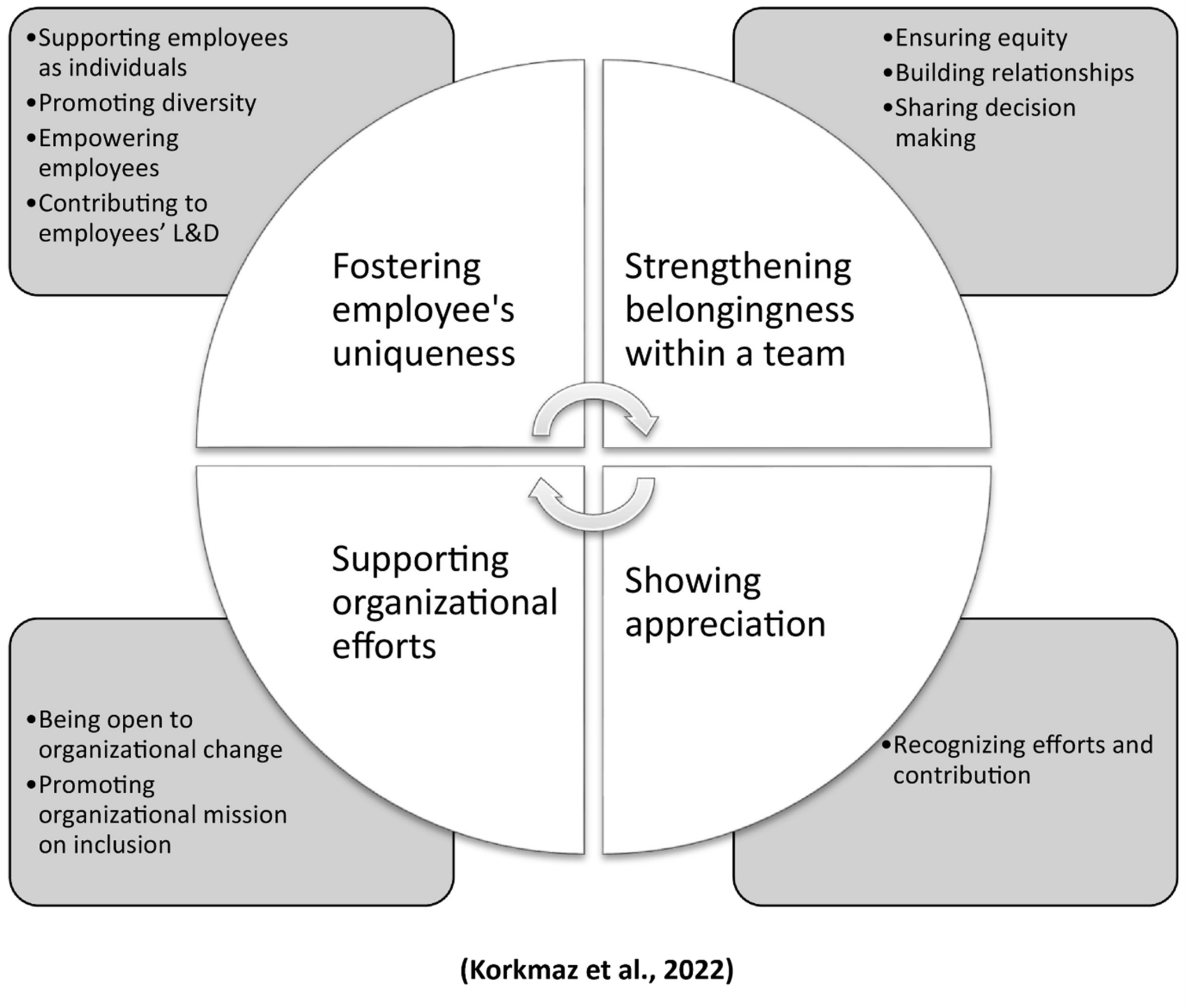 Inclusive leadership encompasses fostering individuality, strengthening belongingness, showing appreciation, and supporting organisational efforts.